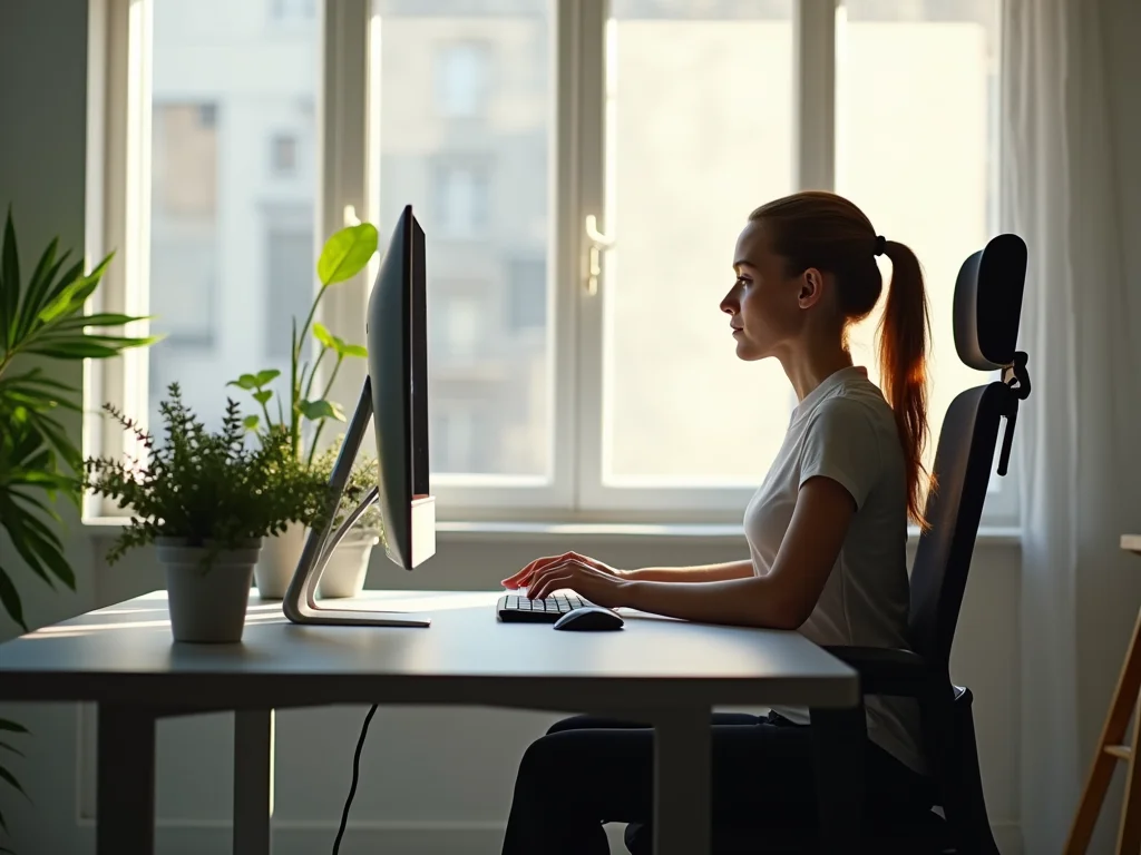 - Posicione o Monitor Corretamente: O topo da tela deve estar na altura dos seus olhos ou ligeiramente abaixo, a uma distância de um braço esticado.